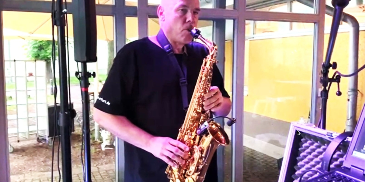 Ich verlasse meinen Platz am DJ Pult, hänge mir mein Altsaxophon um, gebe live etwas zum Besten und lasse mich dabei von Musik begleiten.
